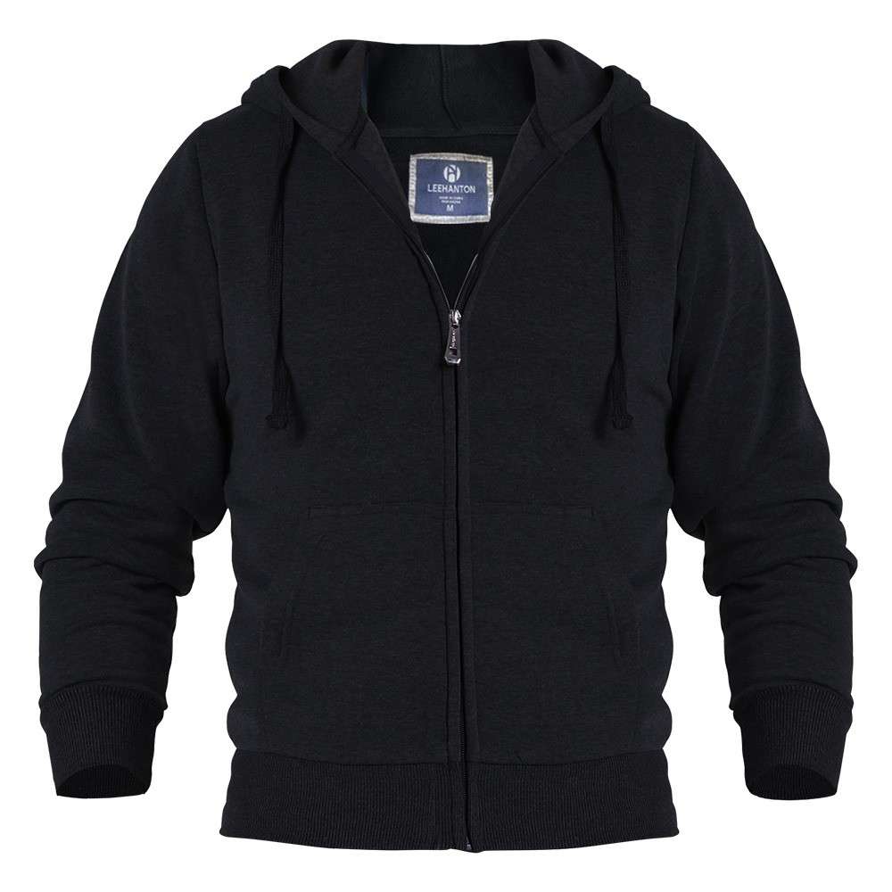 Men's Fleece Full Zip Hoodies - Size Large, Black