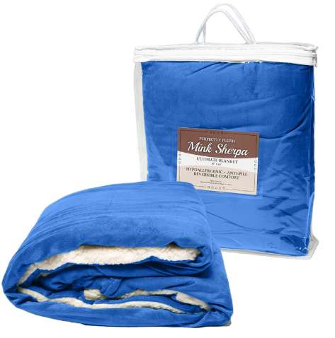 - 100% polyester, one side faux micro mink, other side faux lambswool sherpa